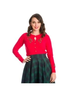 - Embroidered Holly on Front and Sleeves