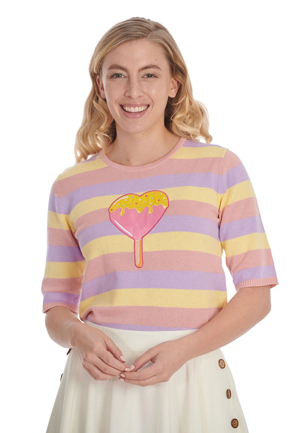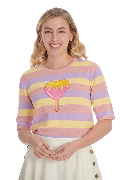 - Pastel stripe with ice cream embroidered motif