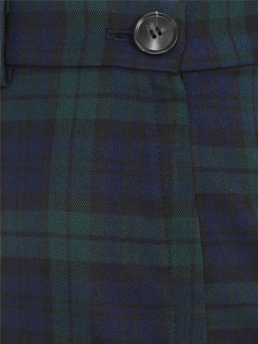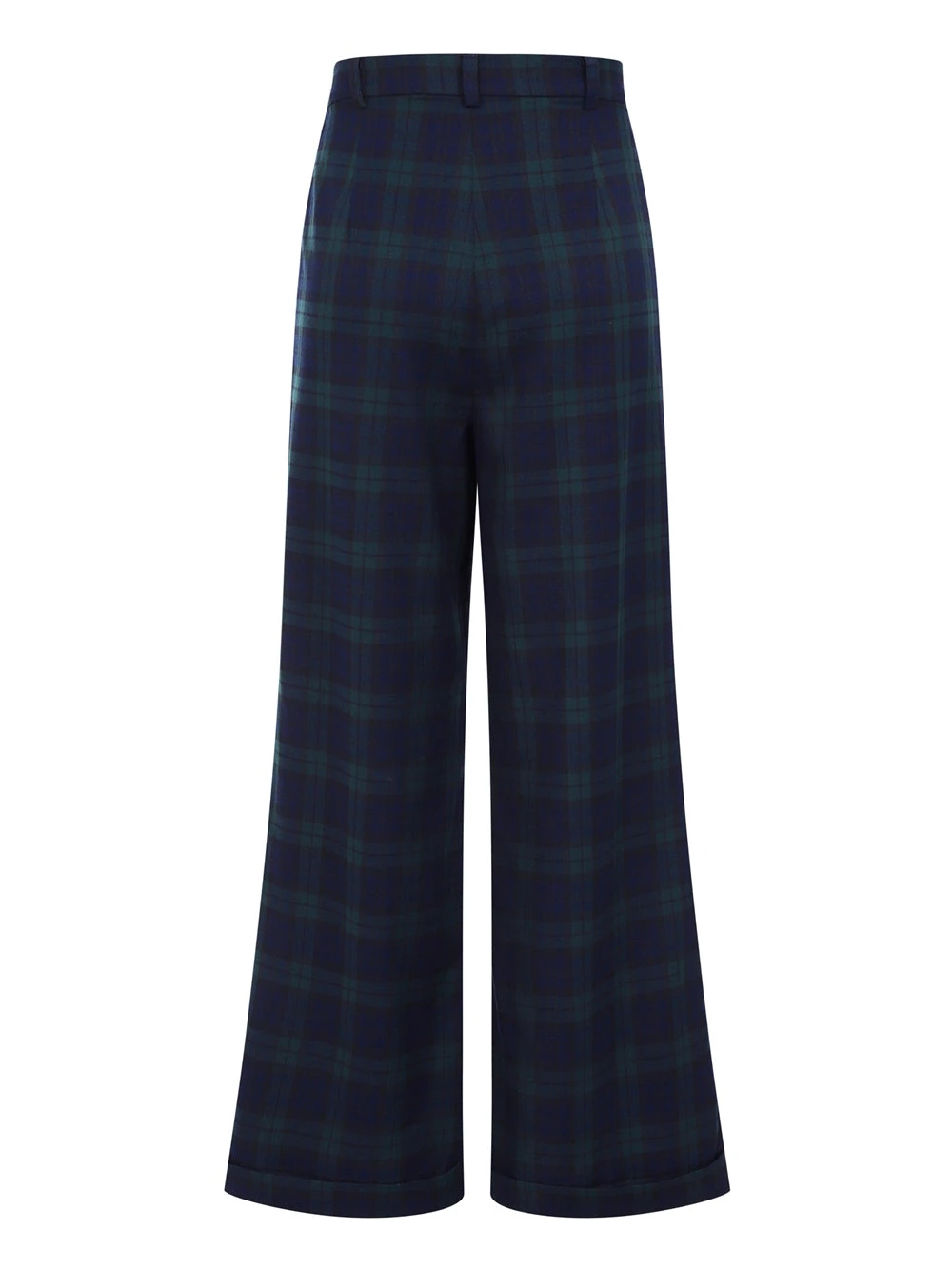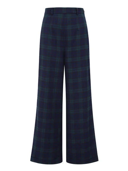 Check yourself with our Baylee Blackwatch Check Trousers! They’re a classic pair of wide cut trousers that features our Blackwatch check of subtle navy and dark green. They fit high on the waist and fall down to the floor. The narrow waistband is complete with belt loops!