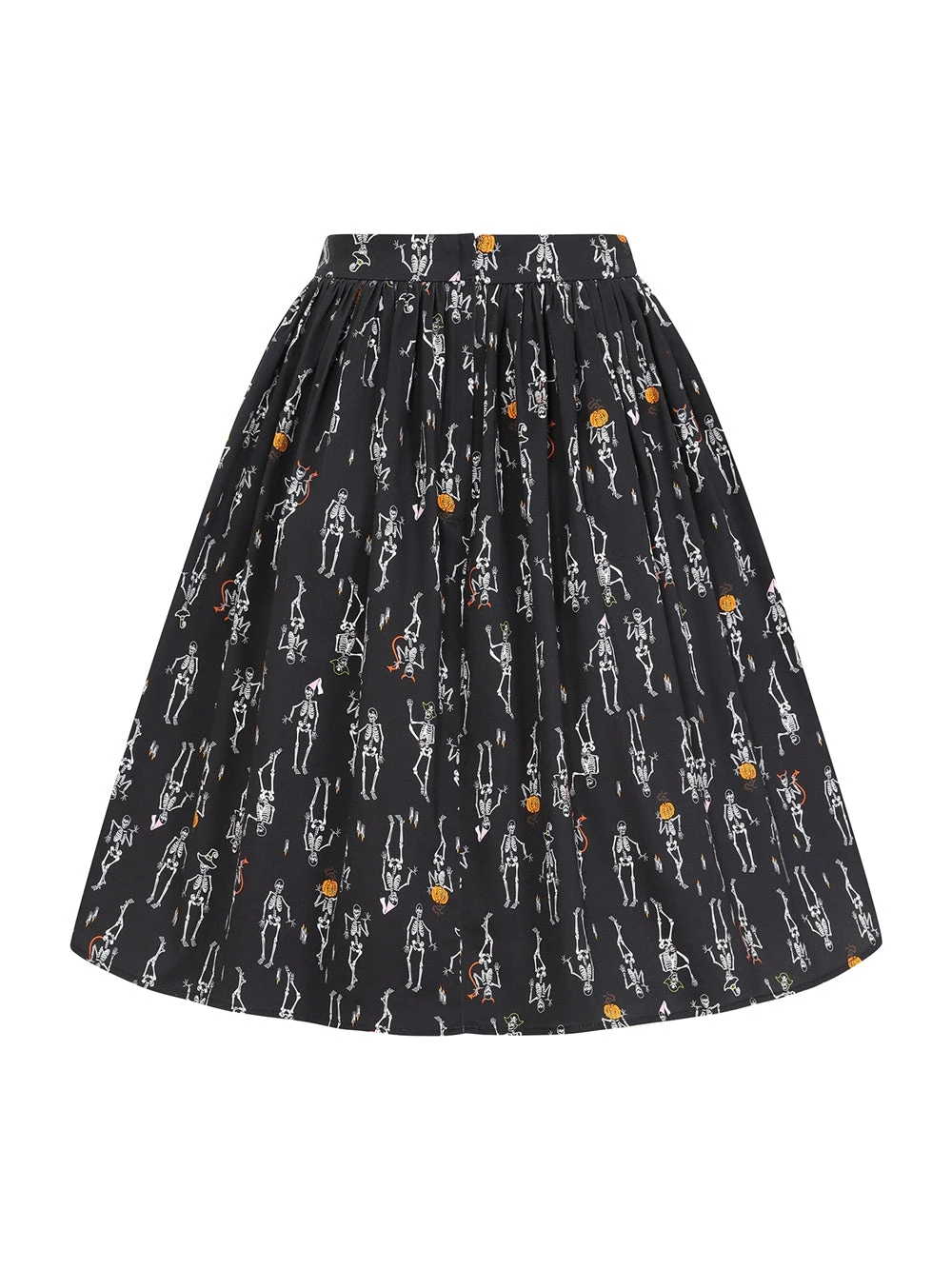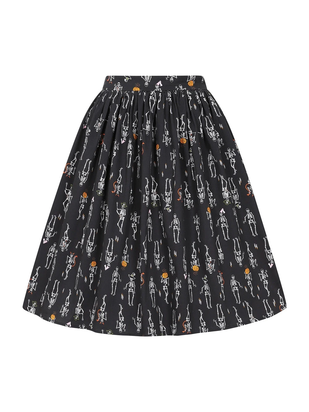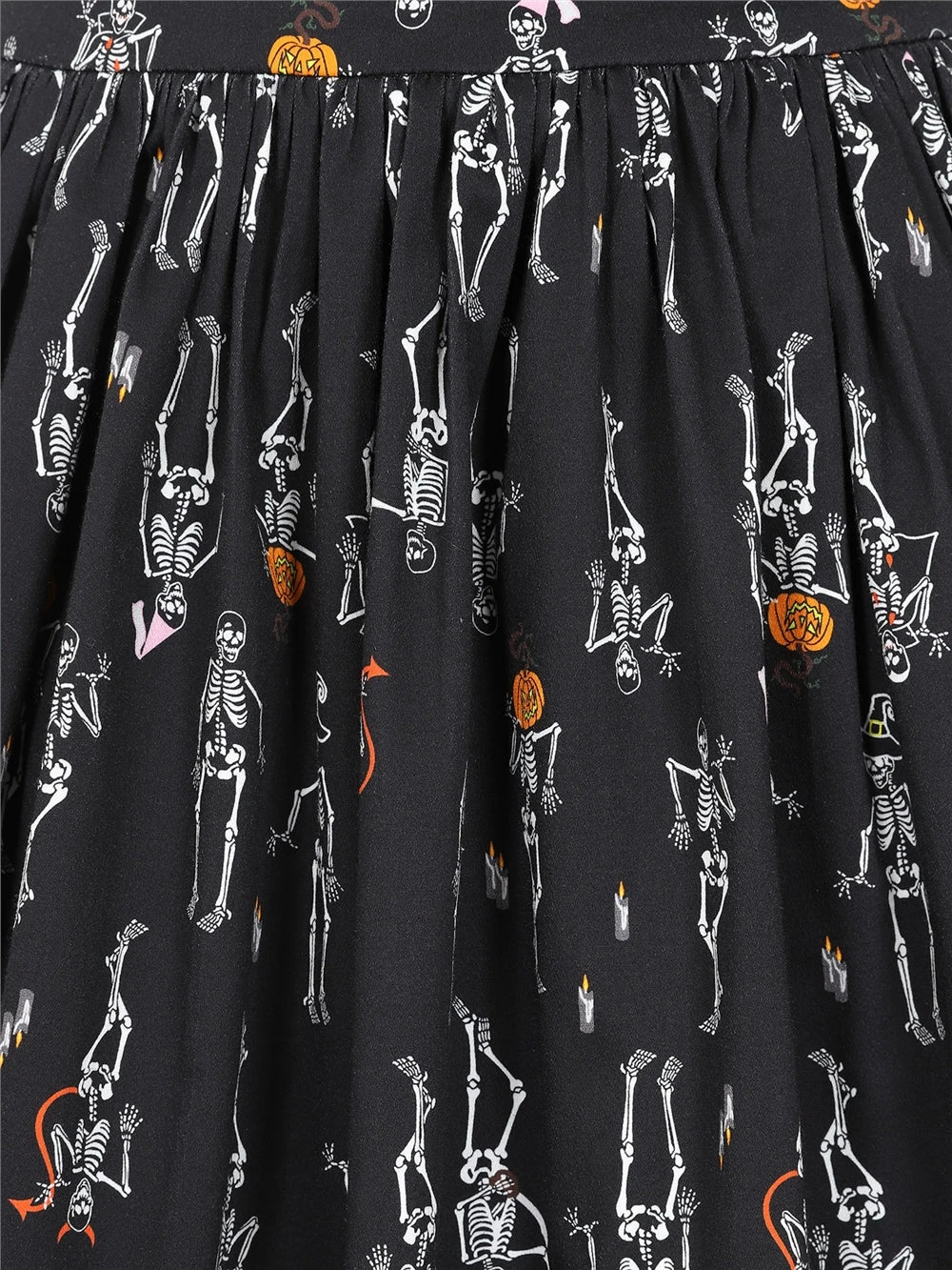 This spooky style is the Jasmine Skeleton Boo-gie Swing Skirt!