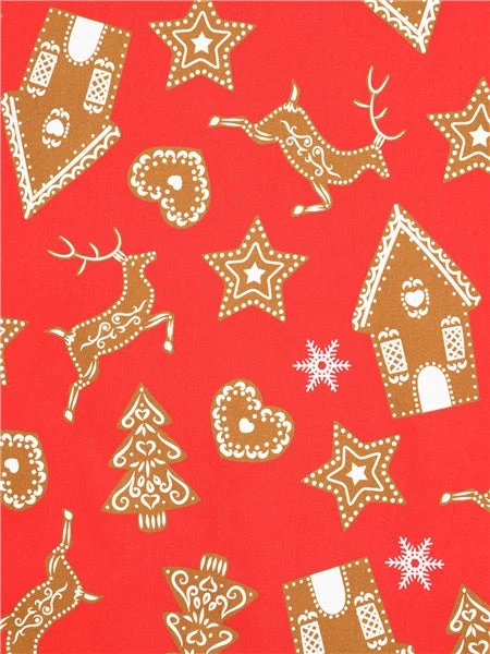 - Features bespoke print of gingerbread houses,