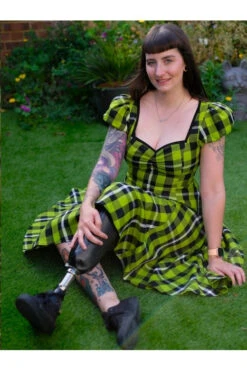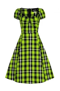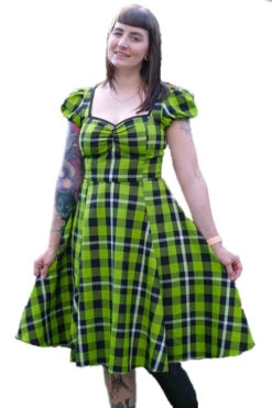 It’s an adorable, vintage inspired style featuring a bold bespoke check of bright green and black with white highlights.