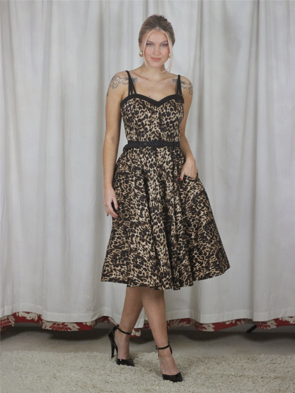 Feel wild with the Nova Leopard Swing Dress! She’s a classic style made from our linen-feel sateen fabric, that’s covered in a fierce leopard print!