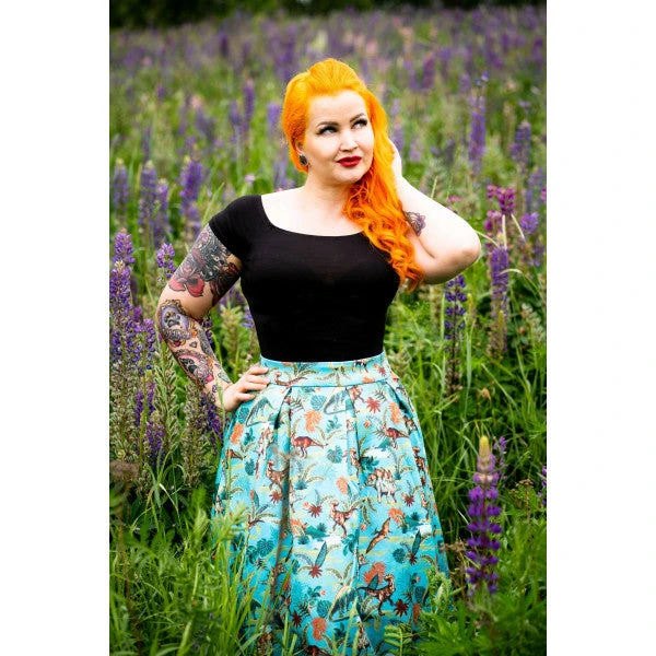 The Carolyn Skirt is full with box pleats and 2 hidden side pockets.