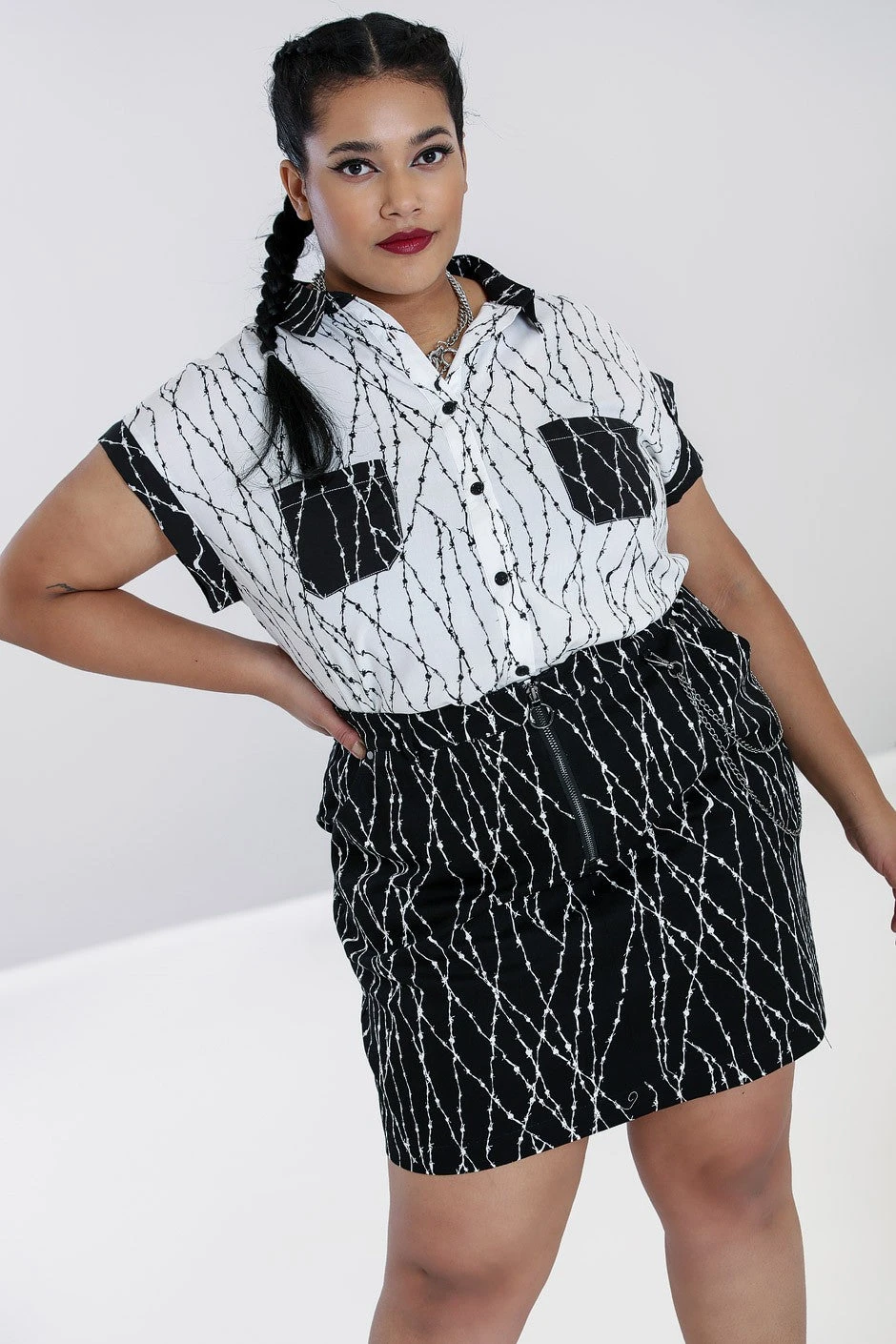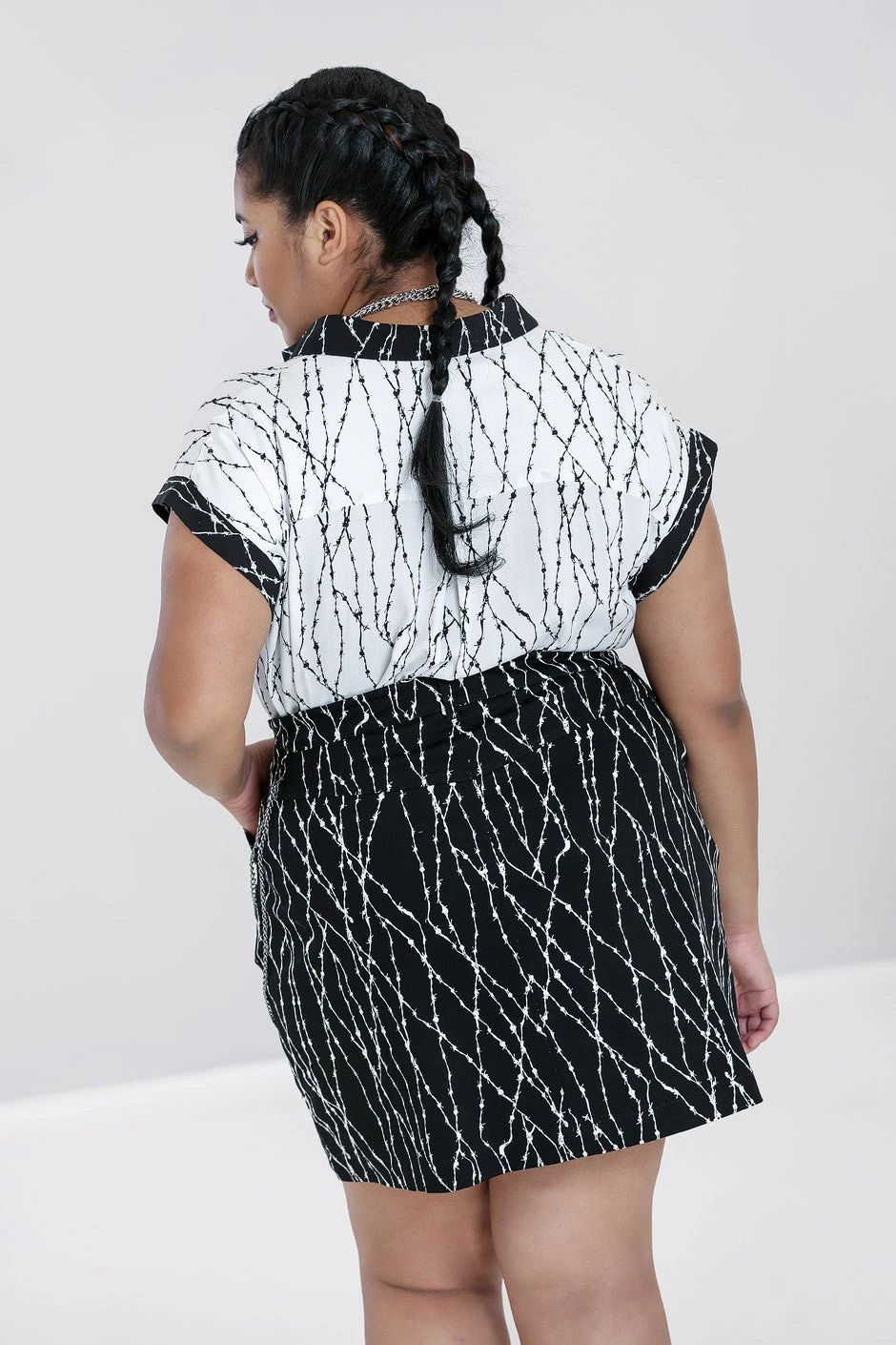 Wear your usual Hell Bunny Skirt size in this one or size down if you want to wear it snug.
