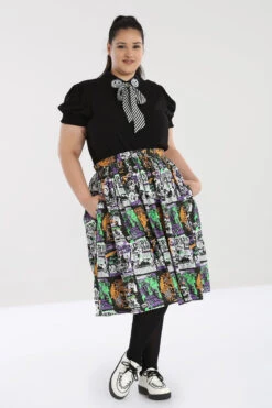 - Recolour of a hell bunny classic print , B-movie comic print in bright purple, orange & green