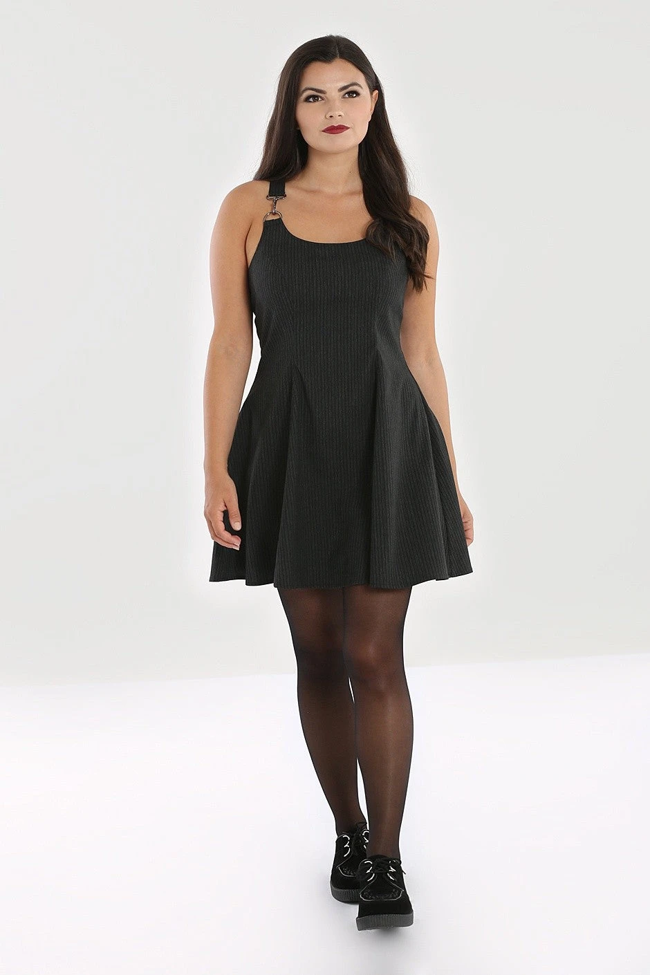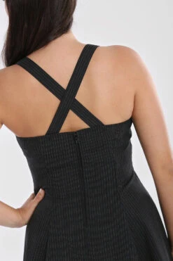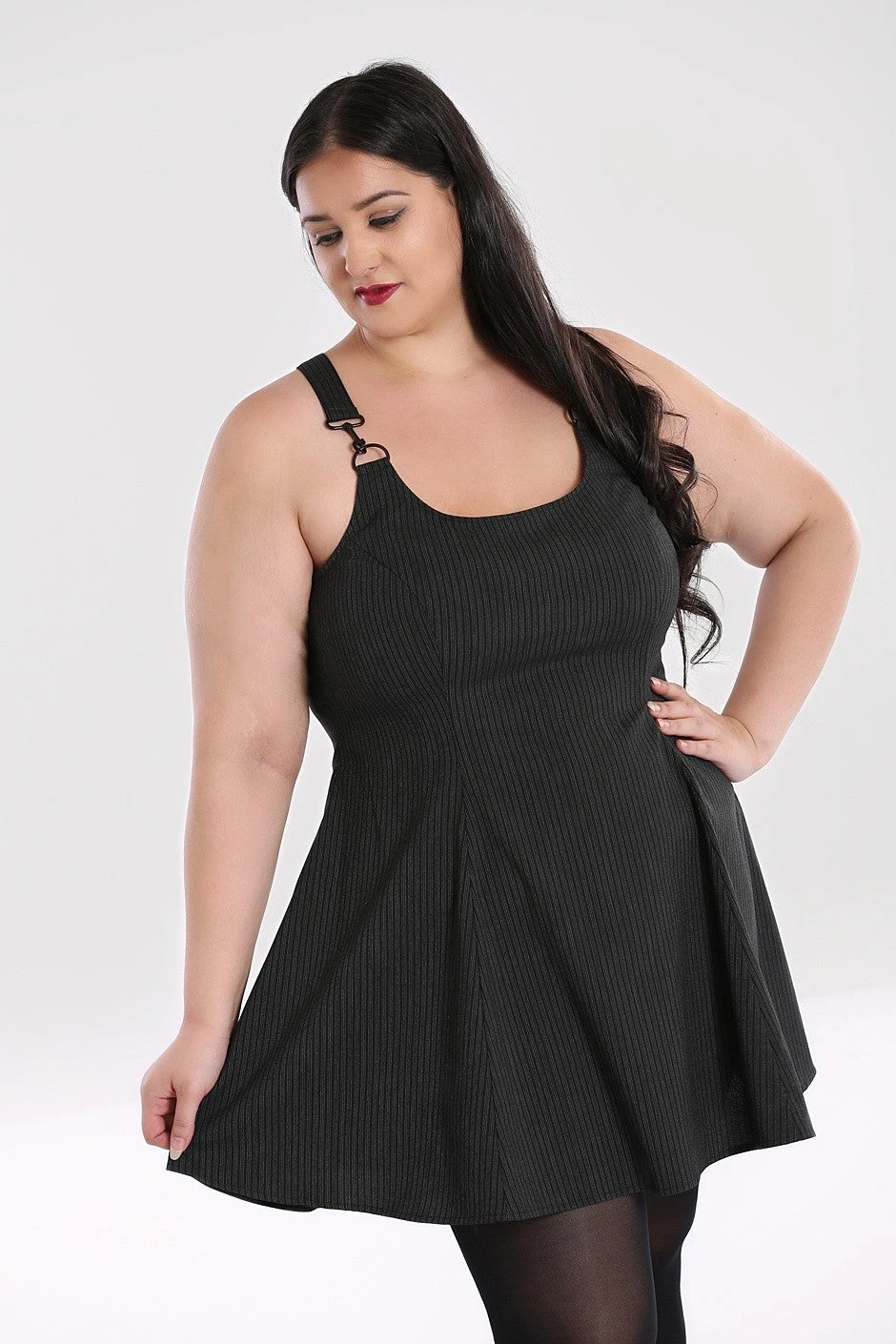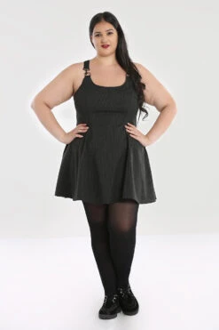 - Flared skater dress in grey pinstripe fabric