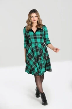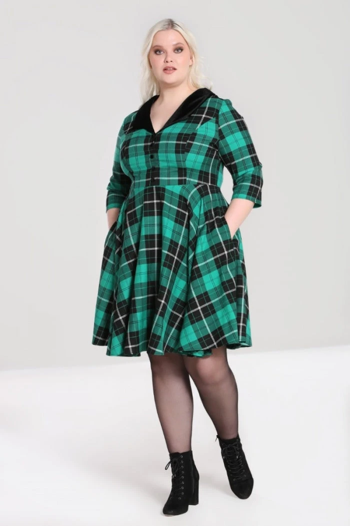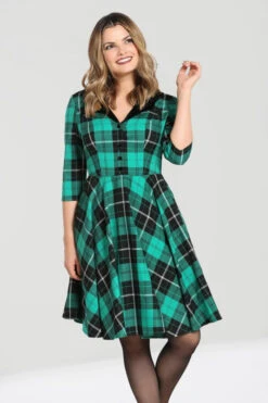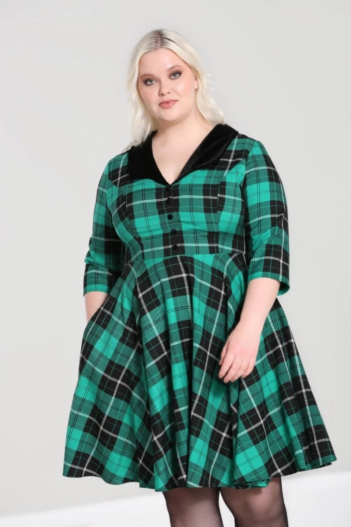 - Green & black tartan mid dress