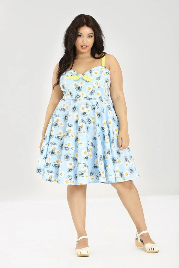 Fit advice: Fabric has slight stretch, stick to sizing advised on size guide for bust & waist, hip meaurement not needed as skirt is flared