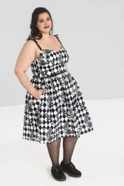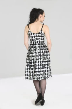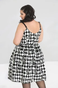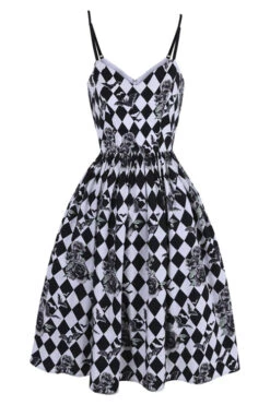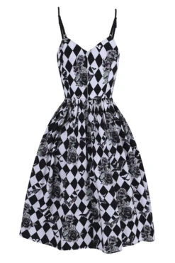 - Harlequin and roses print in black and white with a splash of green in the leaves
