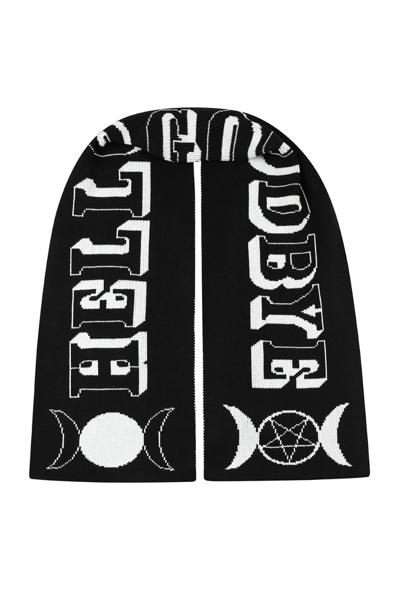- Black & white Ouija board graphics, writing “Hello Goodbye” with moon