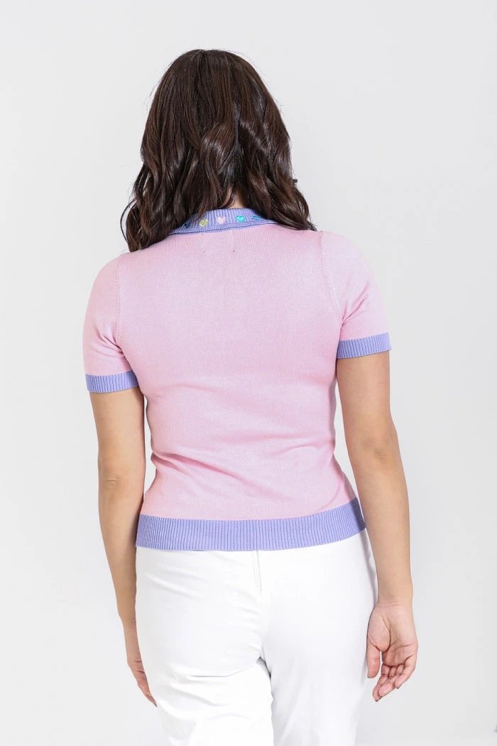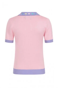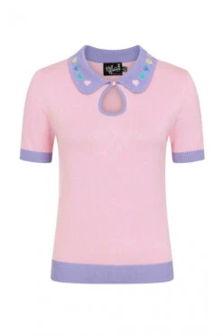 - Contrasting lavender collar,cuffs & ribbed hem
