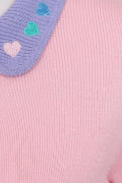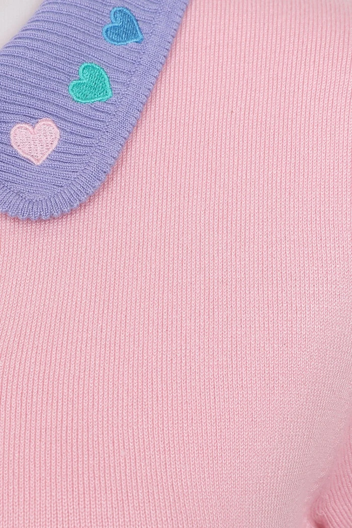 - Multi coloured pastel embroidered hearts on collar