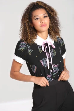 - White contrast collar & cuffs with frill detailing