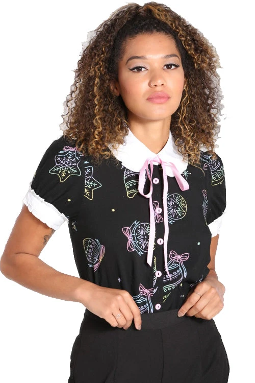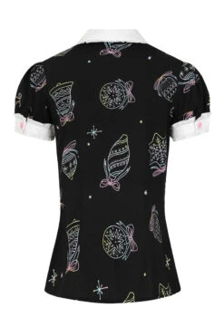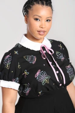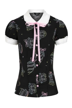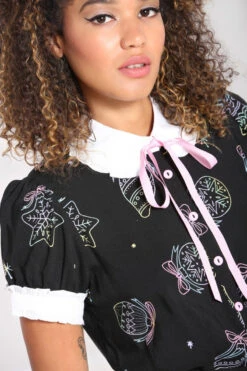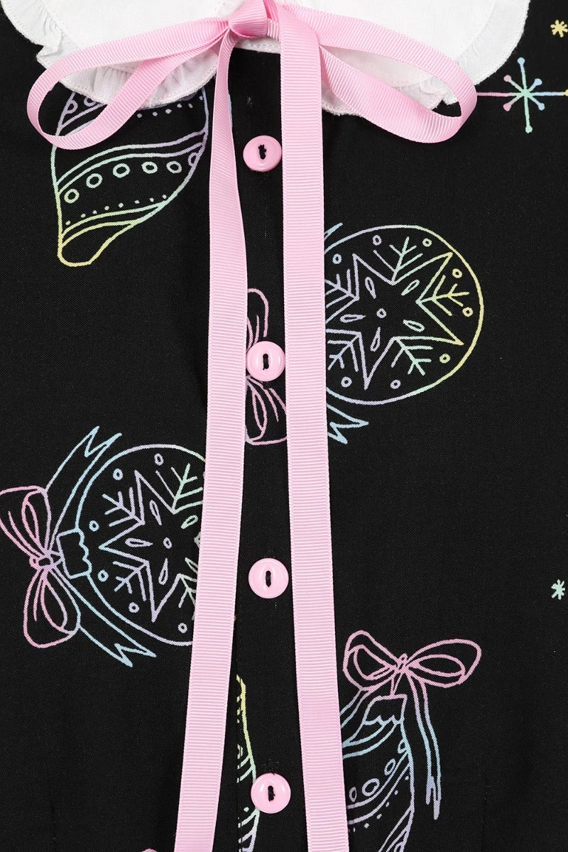 - Base fabric in black with pastel festive illustrations printed