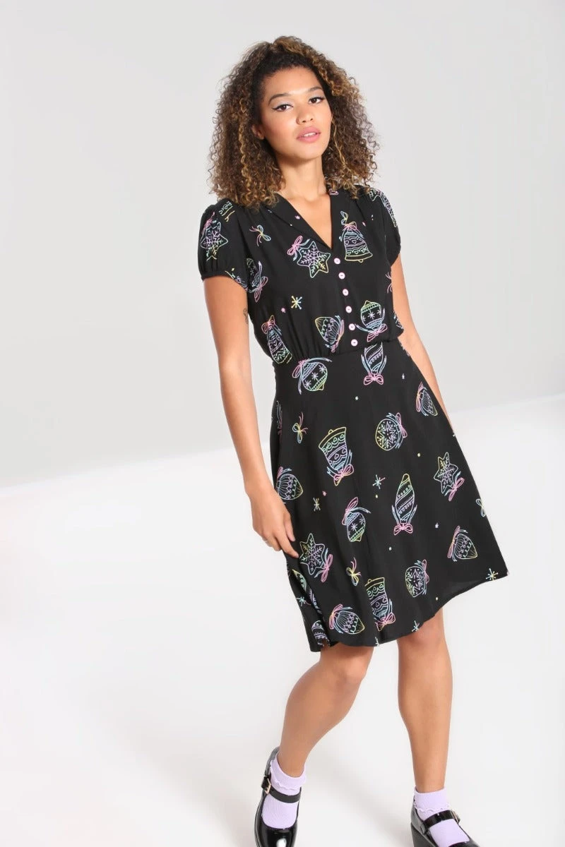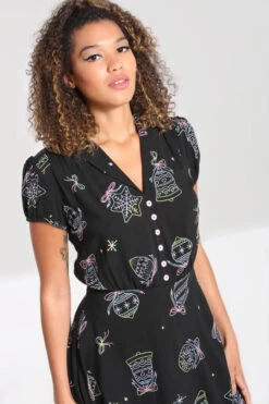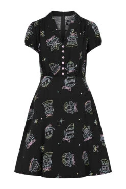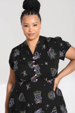 Fit advice: Fabric has no stretch, bodice has loose fit around bust, fitted in at waist, stick to sizing advised on size guide for bust,waist & hips