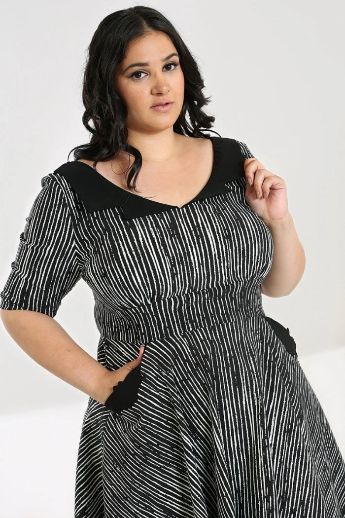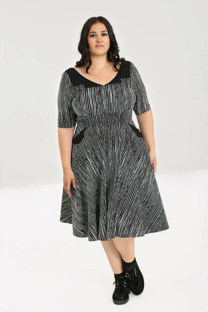 Fit advice: Fabric has slight stretch, stick to sizing advised on size guide for bust & waist, hip measurement not needed as skirt is flared