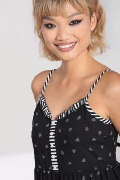 - Adjustable spaghetti straps in contrast black & white stripes