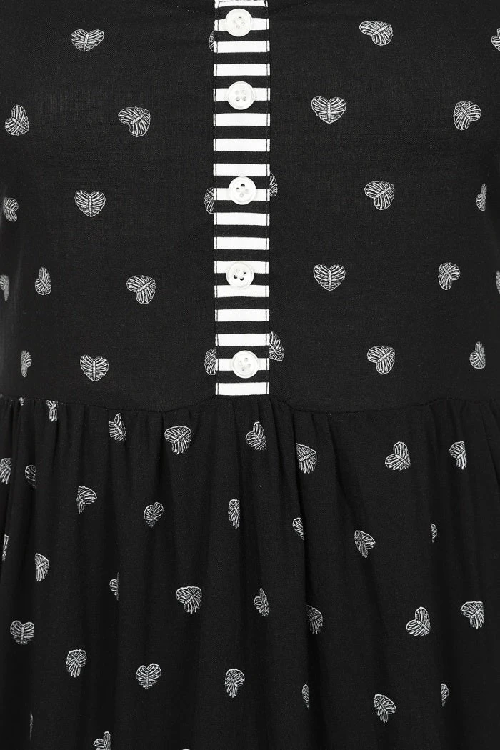- Decorative placket & frills on bodice in black & white stripes