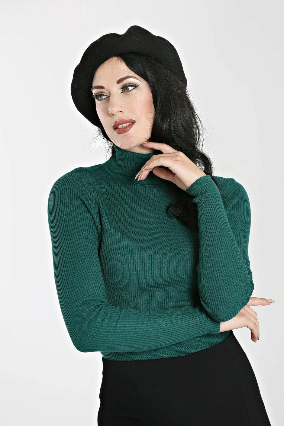 - Ribbed polo neck top