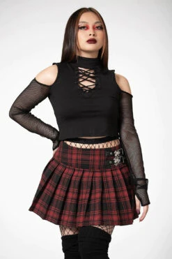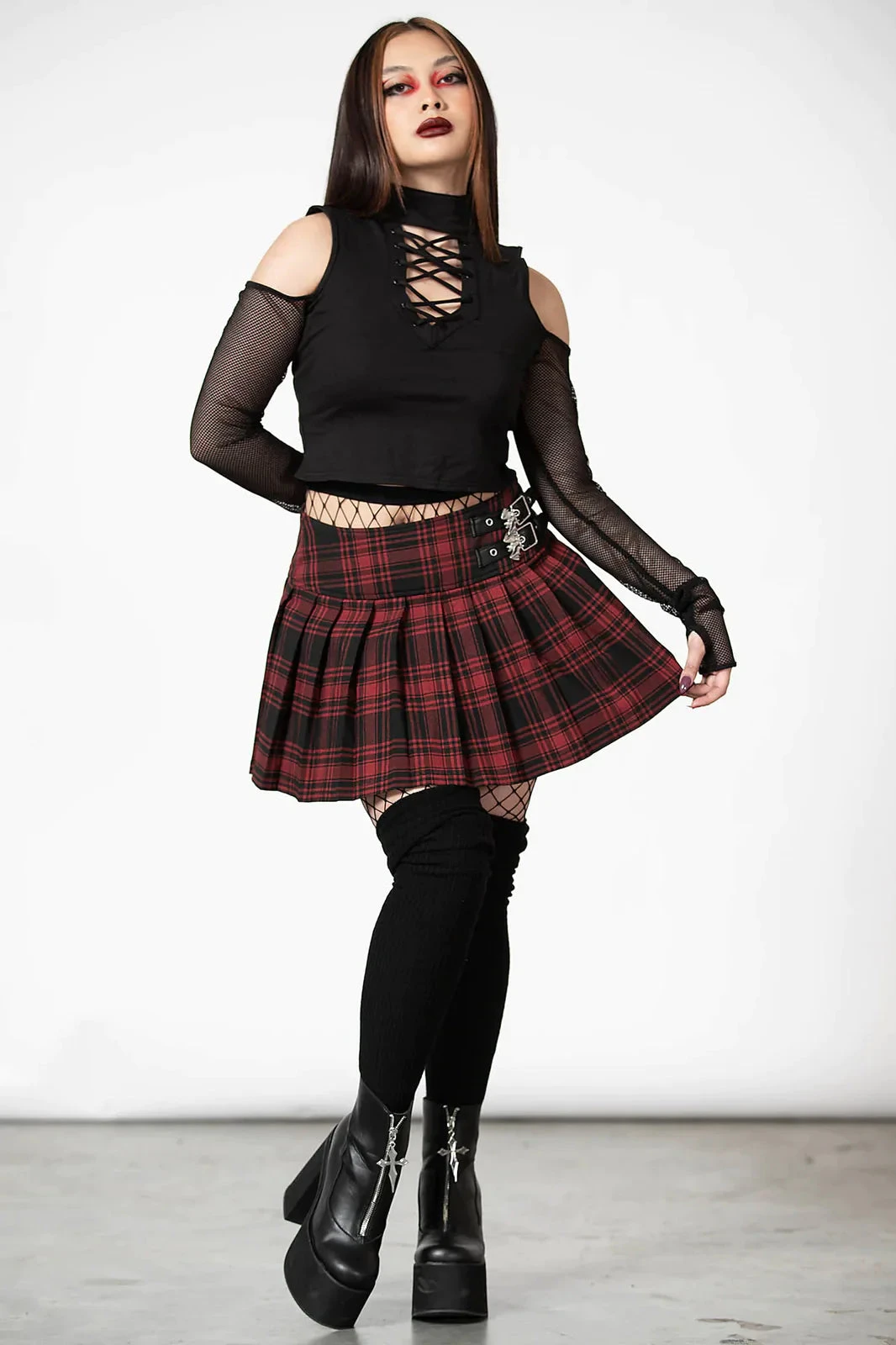 A perfect blend of naughty and nice – the ‘Bat Babe’ mini skirt; conjured using a luxe fabric which stretches to perfection for a fit that will have you feeling like the bad-ass babe you are! The devil is in the details – bat buckles and pleated body. This must-have skirt is a dream to style – perfect from dusk to dawn!