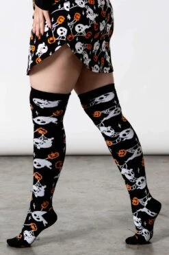 Spooky soulmates live on forever. Super cute stockings with contrasting graphic print; purrfect for your black-on-black wardrobe.