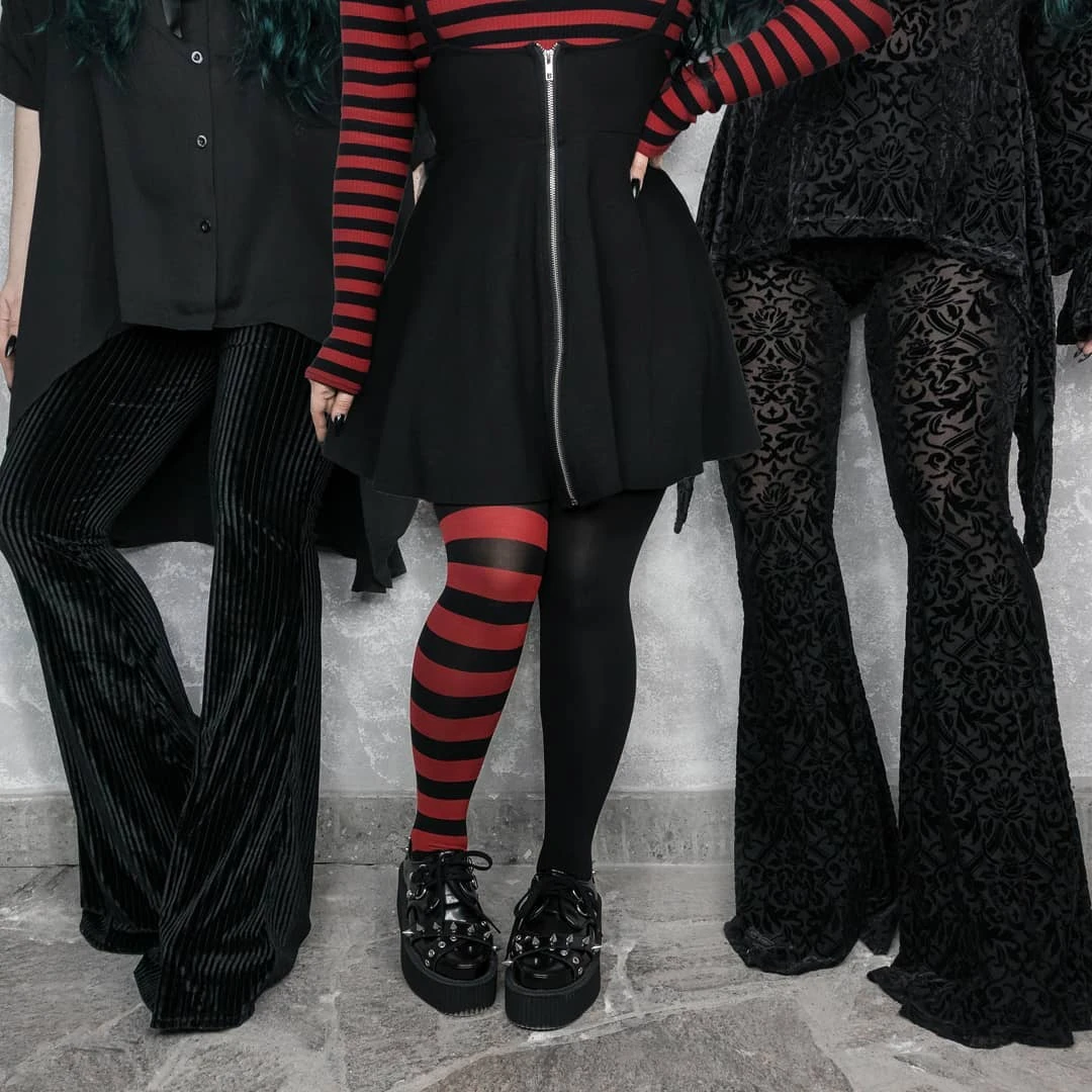 A perfect staple in any dark wardrobe – the ‘Suspend Me’ statement skirt is spun from a special super-soft fabric mix – for perfect comfort and flattering fit. Featuring a generously flared skater skirt with high waist and suspenders construction with buckles closure. With a long zip to the front, for easy on/off! An essential piece – easy to wear and goes with anything!