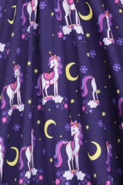 - Print features Unicorns, Moons, Flowers, Starts and Rainbows on a Navy background