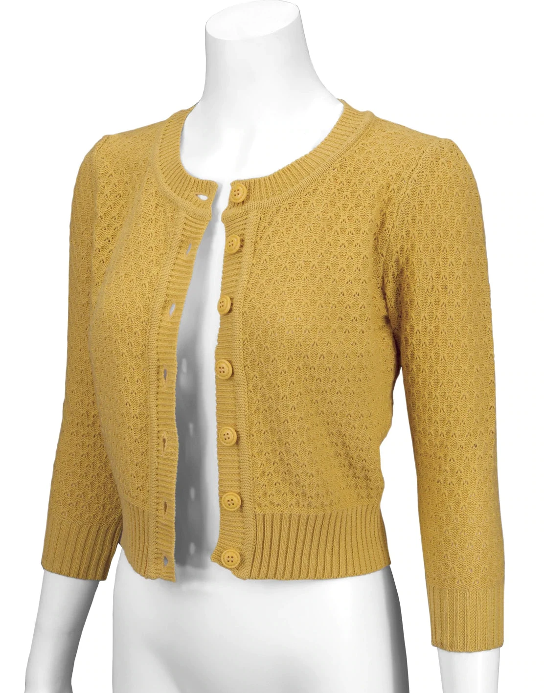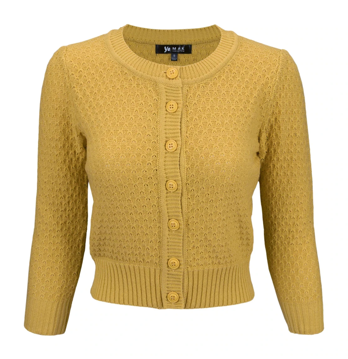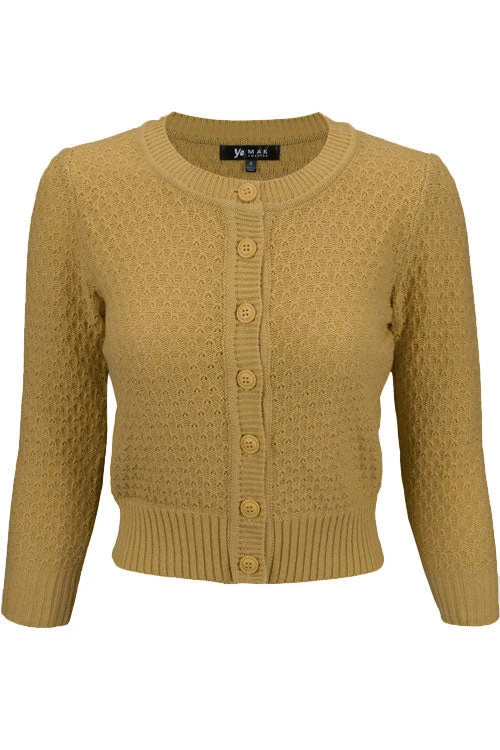 MAK Sweaters Chunky Vintage Knit Cardigan With 3/4 Sleeves In Bronze (Mustard)