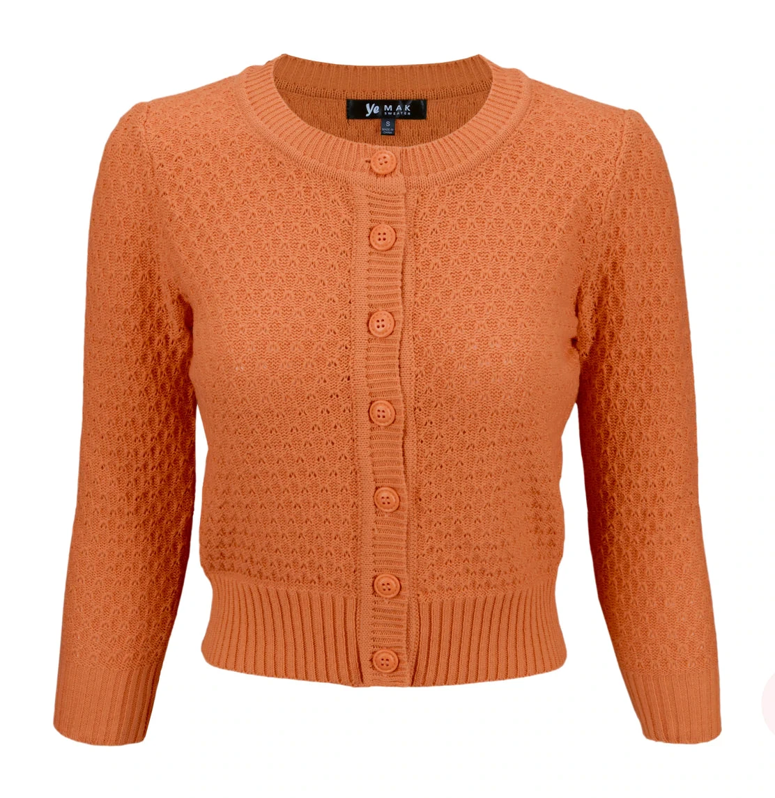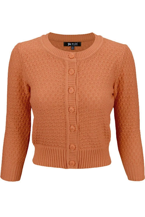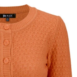 MAK Sweaters Chunky Vintage Knit Cardigan With 3/4 Sleeves In Dusty Orange
