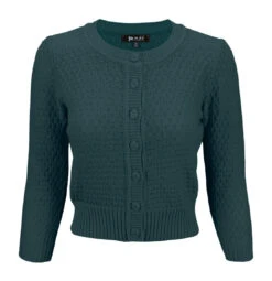 MAK Sweaters Chunky Vintage Knit Cardigan With 3/4 Sleeves In Peacock