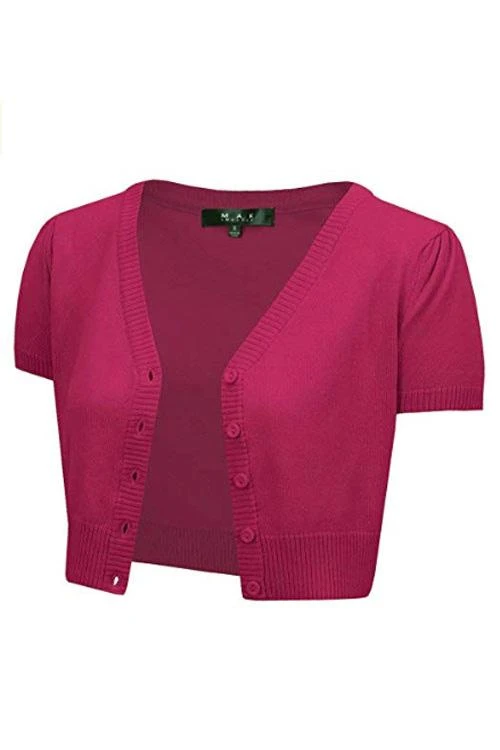 MAK Sweaters Cropped Cardigan With Short Sleeves In Magenta