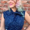 The ultimate quirky cute face mask! This 100% cotton face mask is reversible with 2 fun prints. One side is our fun Mr. & Mrs. Claus print & the other side is our Candy stripes print. Pair with one of our dresses or separates for added retro vibes!