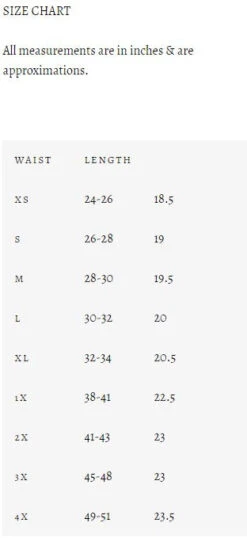 Fit information: Due to the elastic stretch panels in the back on the waistband, you may want to size down. Please see size chart for measurements.