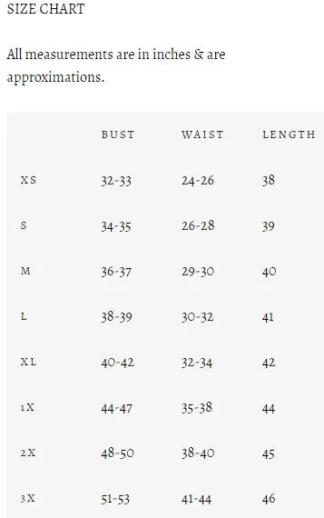 NOTE that this brand has a whole extra plus size of 1X so the plus sizes tend to be BIGGER than Hell Bunny sizes. If in doubt use the chart provided, they are spot on!