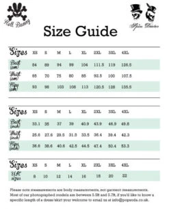 XS, S, M, L, XL, 2X, 3X & 4X